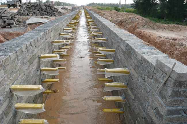 復(fù)合材料電纜支架環(huán)境適宜溫度范圍:-20℃--+70℃.安裝宜水平走向,如傾斜則需采用其他措施固定電纜.要求平衡、豎直,同側(cè)支架水平間距80厘米,雙側(cè)支架錯(cuò)開安裝,保證支架均衡承載.支架預(yù)埋時(shí)須保證支架基座與砌墻混凝土充分咬合、密實(shí)、與固定墻面保持直角狀態(tài),保證底座受力面積,避免扭曲.